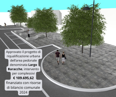 La giunta comunale ha approvato il progetto di riqualificazione urbana dell’area pedonale denominata Largo Baracche, intervento per complessivi € 109.695,62. L’opera, finanziata con risorse di bilancio comunale 2024, ottenuti i necessari nulla osta, dovrebbe essere avviata al termine della stagione turistica.